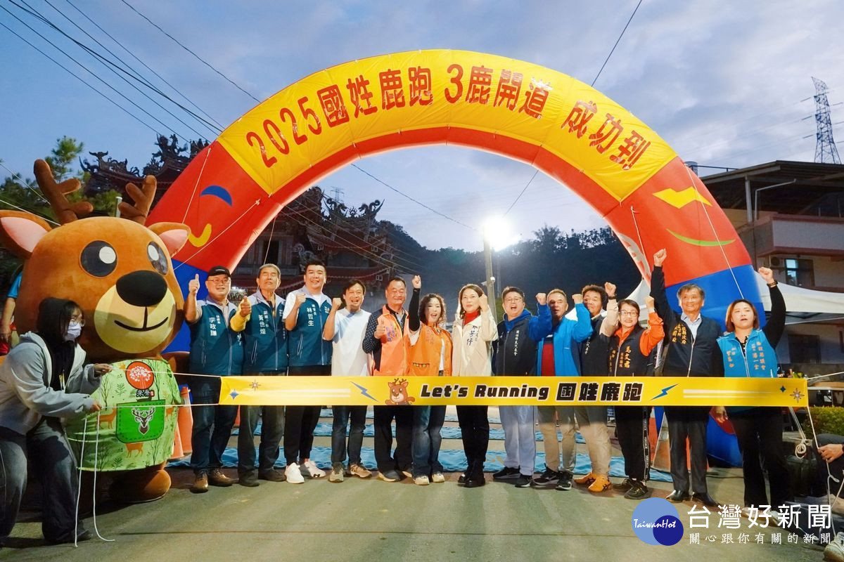 南投縣國姓鄉在具百年歷史的楞嚴宮廣場盛大舉辦「2025 國姓鹿跑」。(國姓鄉公所提供)