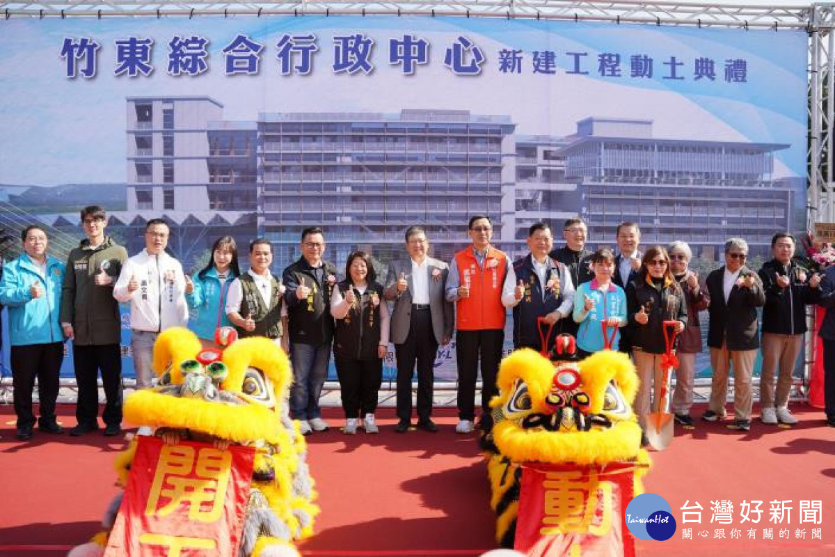 新竹縣政府歷時兩年多籌備「竹東綜合行政中心新建工程」,16日上午舉行開工動土典禮。縣長楊文科表示,竹東綜合行政中心分AB兩棟,為地上6層的建築物,這塊腹地串聯大禾埕廣場、轉運站,未來還有圖書館等設施,將成為竹東發展的核心。