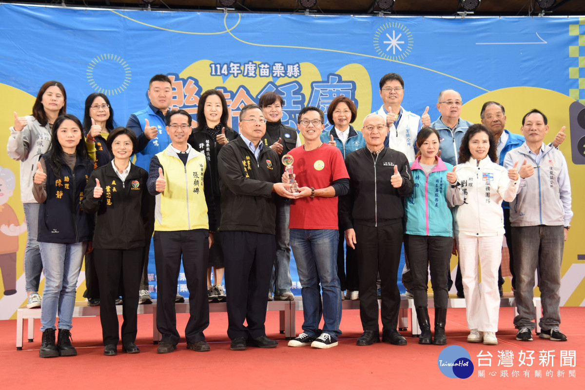 苗栗縣樂齡學習中心成果展暨交通安全戲劇競賽,17日上午在巨蛋體育館熱鬧登場,縣府秘書長陳斌山頒獎表揚樂齡教育奉獻獎得主謝旻憲、梁雅琪,以及6所績優中心、績優講師與志工等;除集合全縣18所樂齡學習中心和3所新住民學習中心,呈現豐碩學習成果外,另辦理融入交通安全觀念的戲劇競賽,學員使出渾身解數爭取佳績,落實終身學習又兼顧長輩的交通安全教育。