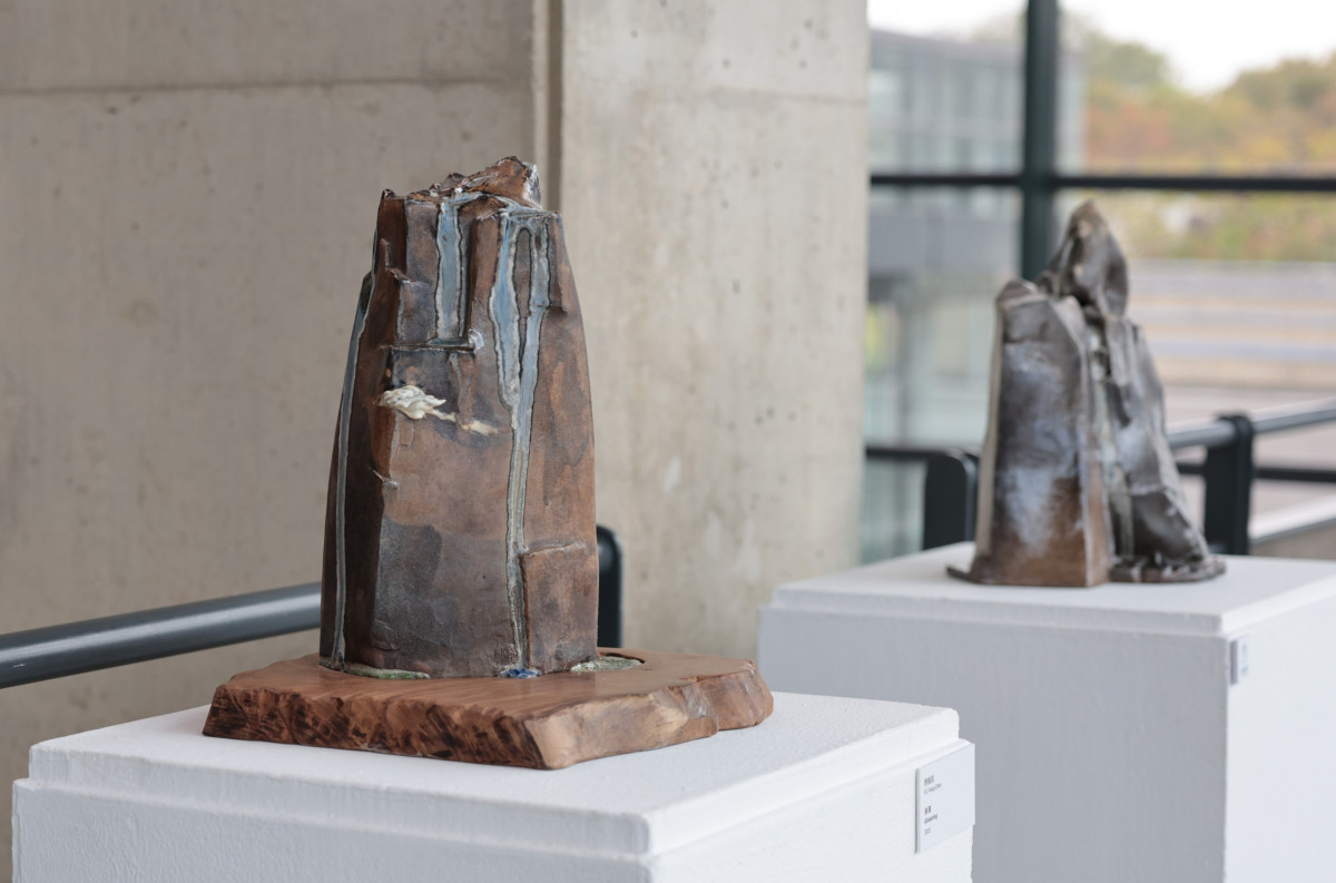 陶博館館長張啟文表示,陶博館透過「申請展徵件」機制,持續鼓勵藝術家以陶藝為語言,與當代社會、文化、自然對話。陶藝家傅楓宸從柴燒陶特有的肌理出發,製作了花器、茶碗以及山水雕塑的創作,融合器物的山石肌理,呈現出自然與人心之間的對話。