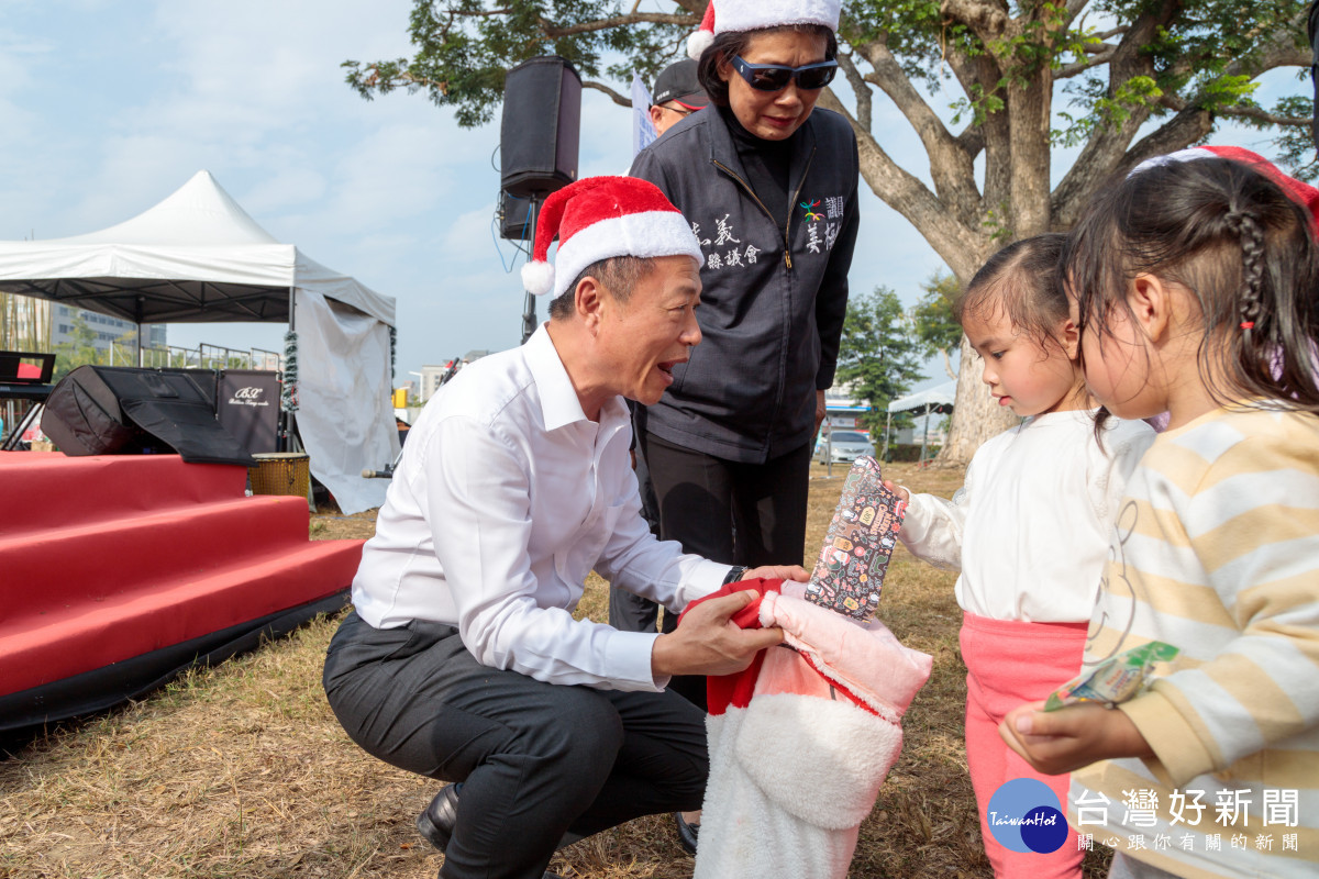 嘉義縣長翁章梁化身耶誕老人發糖果/陳致愷翻攝