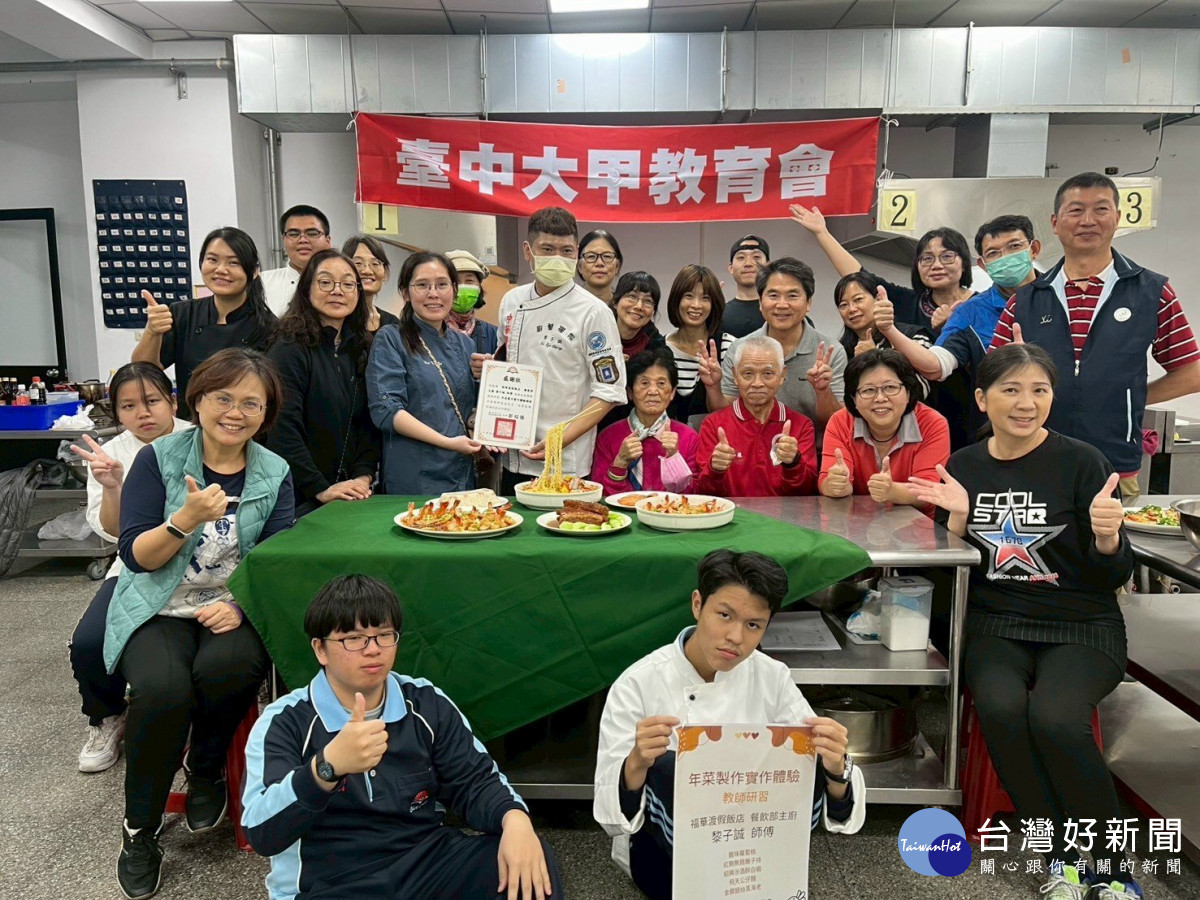 台中市大甲區教育會為傳承飲食文化,促進教師專業成長與情誼交流,特結合區內致用高中餐旅群教師在該校中餐教室舉辦「大甲區教師年菜烹飪專業研習」。此次活動以年節佳餚為主題,特別商請石門水庫福華渡假飯店餐飲部黎子誠主廚擔任授課講師,指導參與師長製作五道經典年菜—臘味蘿蔔糕、紅麴無錫骨、紹興汾酒醉白蝦、飛天公仔麵、金饌板條蒸海老。