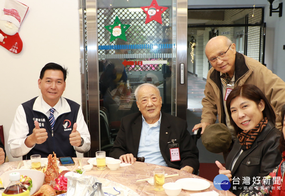 新北市議會今(25)日舉辦第4屆議員就職3週年慶暨歷屆議員回娘家活動,天空雖然飄著細雨,但議員就職3週年慶暨歷屆議員回娘家活動仍熱鬧登場,近百位議員齊聚一堂,其中包含3位高齡90歲以上的人瑞級議員,分別是臺北縣議會第7屆議員林延湯(96歲)、林晉鵬(90歲)及第8屆議員曾義尚(96歲)。其中,移民巴西多年的林晉鵬議員每年都不遠千里回來參加回娘家活動,市長侯友宜也特別到場致意。