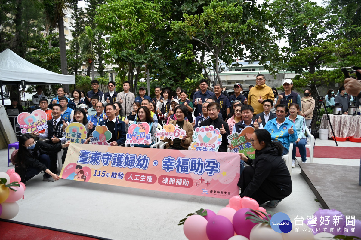 落實照護婦幼健康、支持家庭生育規劃,臺東縣長饒慶鈴日前偕同議長吳秀華、多位縣議員、臺東市市長陳銘風及多位里長、臺東縣衛生局局長孫國平等,於臺東市衛生所召開記者會,正式宣布明(115)年元月啟動「臺東縣守護婦幼幸福助孕補助及媽咪待產包」計畫,透過經費補助與政府貼心關懷,減輕不孕夫妻及進行凍卵女性之經濟壓力,期能建構友善生育環境,協助民眾圓夢,進而提升臺東縣生育率。