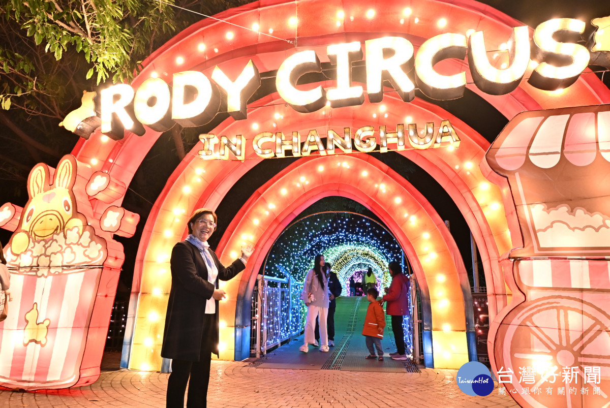 王惠美表示,彰化月影燈季已成功打造為國際知名品牌,讓八卦山風景區成為全台熱門景點。今年三大亮點包括:一、整座八卦山變身歡樂跳跳馬戲團,設置多組馬戲主題燈組與旋轉木馬,成為拍照打卡熱點;二、雙IP萌力加持,推出兩款授權跳跳馬小提燈,深受親子喜愛;三、聲光展演全面升級,由巨型Rody與櫻桃小丸子主燈搭配原版主題曲與中文配音,營造豐富視聽體驗。