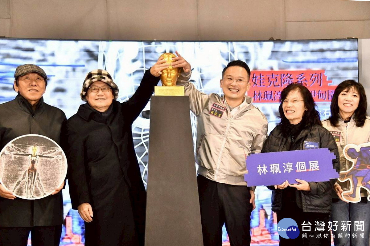 桃園市副市長蘇俊賓出席「夏娃克隆系列:林珮淳的AI伊甸園」開幕記者會大合影。<br />