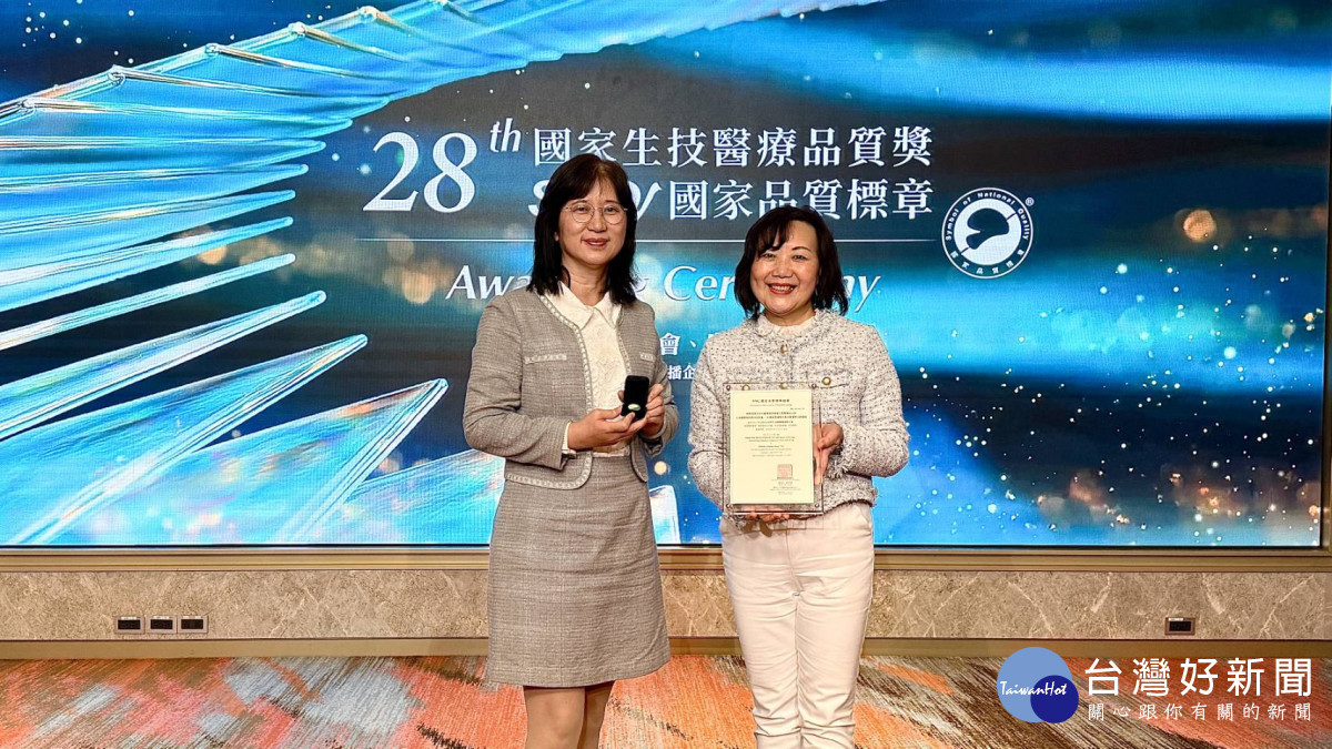白恩惠主任(右)及周組長育蓮(左)參加SNQ 國家品質標章授證。