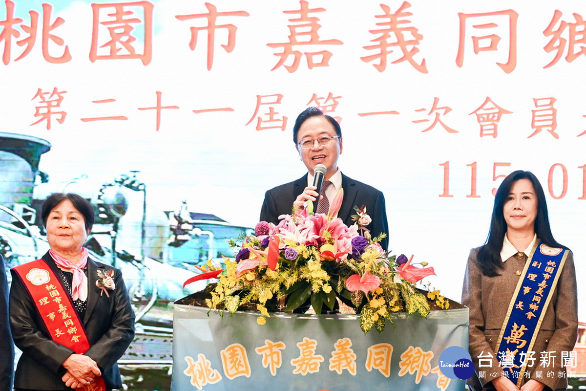 「桃園市嘉義同鄉會」10日舉行第21屆第1次會員大會,桃園市長張善政與會表示,嘉義同鄉會會員遍布全桃園,各自在不同領域努力打拚、表現亮眼,不僅展現嘉義人勤奮踏實的精神,也為社會注入正向能量,期盼同鄉會能持續成為市府與民間溝通的重要橋梁,協助市政政策更貼近民眾需求,共同打造和諧共好的城市環境。