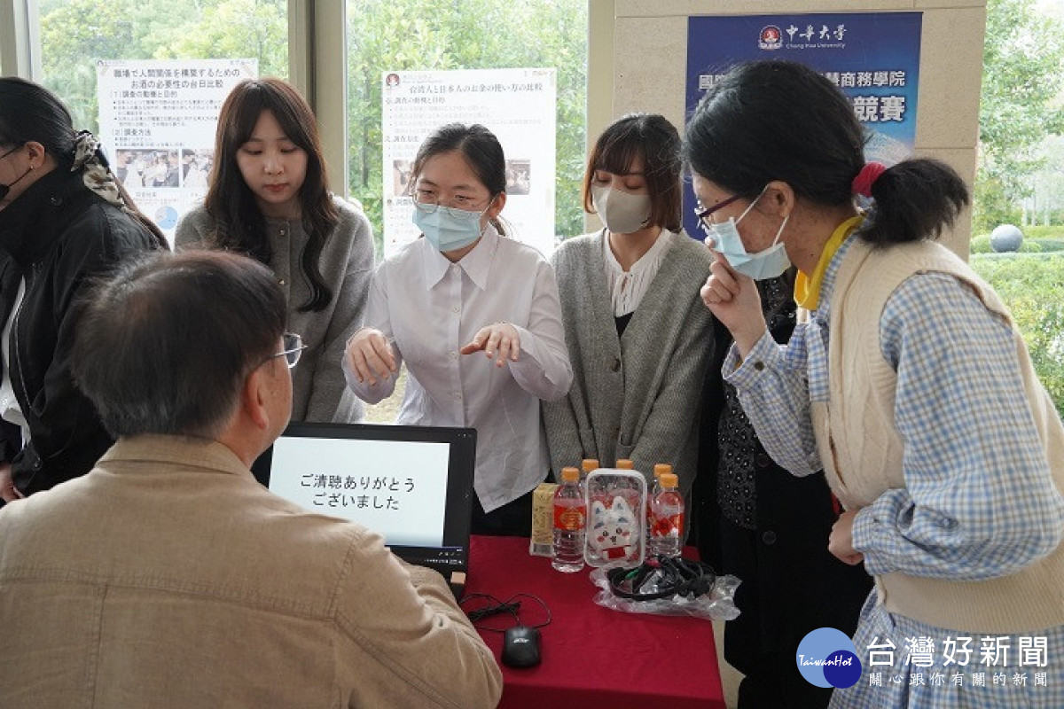 應日系團隊范紋瑛、朱芳宜、黃翎婷、黃修瑩與陽紋綺,以「台灣與日本使用金錢方式的差異」為題,從文化與制度切入,探討兩國在投資與消費上的不同。他們回憶,從PPT製作到錄音修正,過程中曾感到挫折,但靠著「神隊友」互助,終於完成作品。學生笑著說:「能獲得首獎真的意料之外,這不只是肯定,更讓我們相信努力會被看見。」
