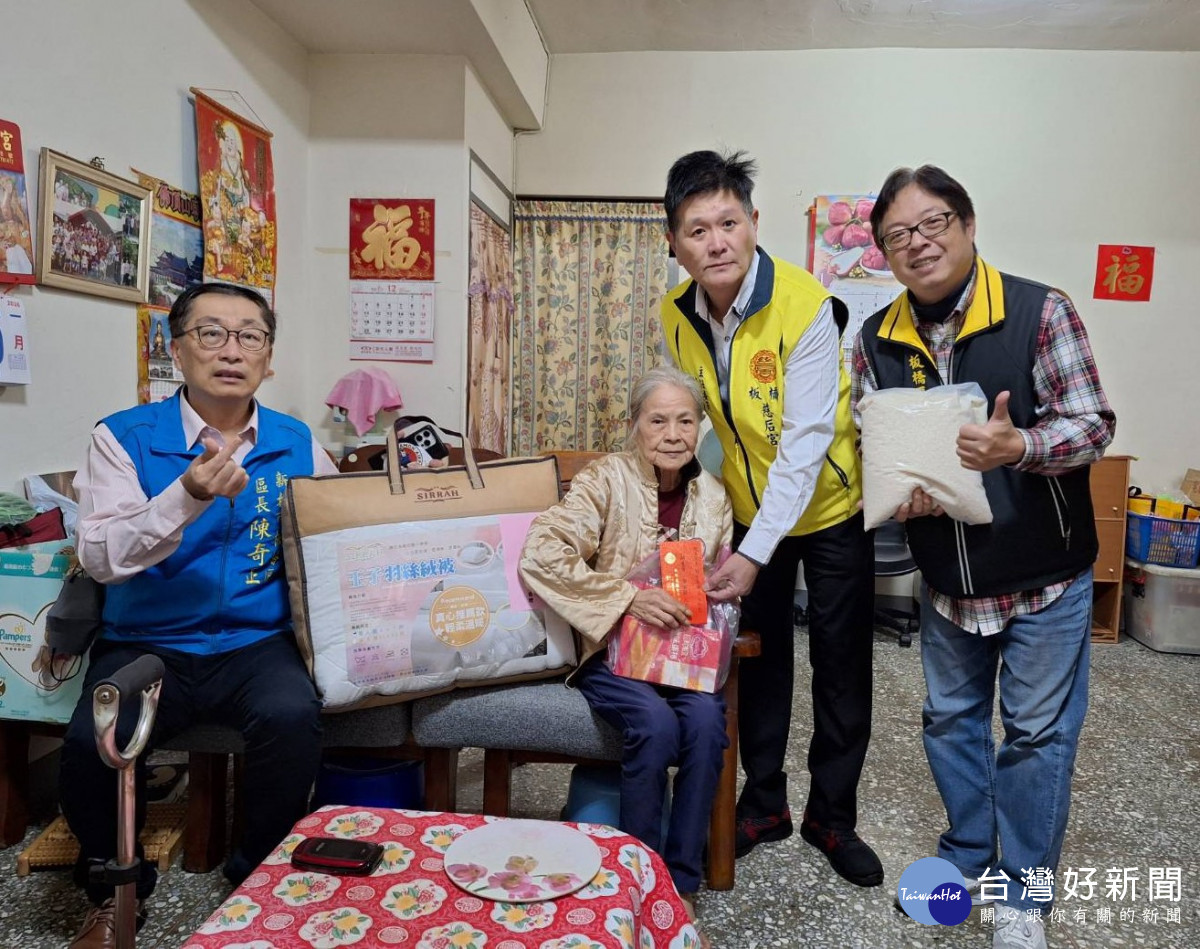 板橋區公所陳區長奇正感謝並協同兩位宮廟主委,以及在地里長與社福志工,親自訪視關懷獨居長者並協助發放,除送上紅包與棉被外,也提供生活物資,了解長者日常生活、居家環境及健康需求,展現「不只是物資捐贈,更是人與人的溫馨關懷」。