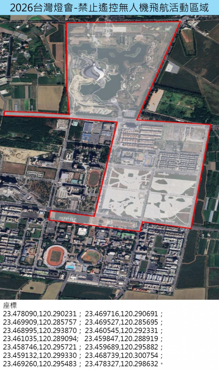 2026台灣燈會將於3月3日至3月15日在嘉義縣盛大登場,相信有許多空拍機玩家已迫不及待,考量活動期間人潮眾多,基於維安及民眾參與活動安全考量,縣府建設處已於會場周邊劃設遙控無人機飛行管制區域與時間,請民眾遵守相關規範。