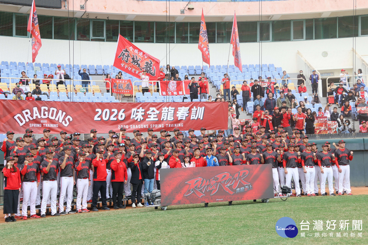 今(18)上午職棒味全龍春訓開訓典禮於斗六棒球場登場,不少熱情球迷湧入球場一睹球員風采,雲林縣長張麗善偕同立委張嘉郡到場勉勵球員,並祝福味全龍新球季訓練順利、戰績長紅。