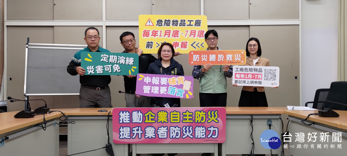 南市府呼籲工廠製造、使用或存放危險物品達管制量以上者,須於今年1月底前,依《工廠危險物品申報辦法》及《工廠危險物品投保公共意外責任保險辦法》規定,完成工廠危險物品申報。