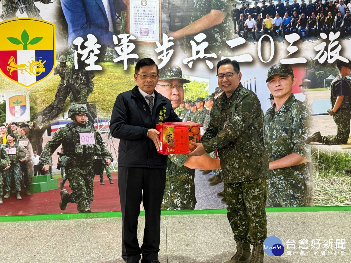 臺南市副市長姜淋煌21日代表黃偉哲市長率市府團隊,前往陸軍步兵第203旅,慰問正在接受新訓的臺南市籍役男,除致贈慰勞金及臺南在地農特產品,並逐一分送餐點與飲料為官兵加油打氣。部隊亦回贈感謝狀,感謝市府長期以來的關懷與支援。