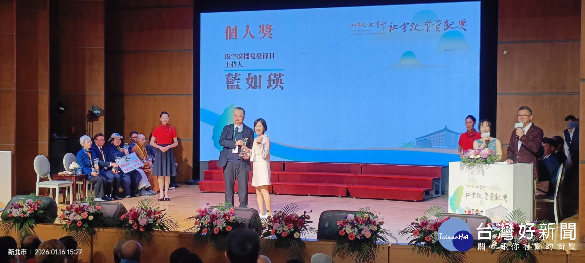 秉持「做自己的生涯主人,做別人的生涯貴人」信念,致力於推動全民職涯發展。環宇廣播電台節目主持人藍如瑛老師,憑藉其在社會教育領域的卓越貢獻與無私精神,於教育部「114年教育部社會教育貢獻獎」頒獎典禮中,榮獲「個人獎」殊榮。