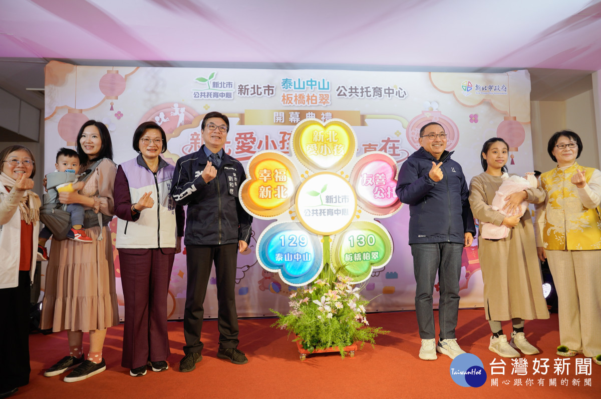 新北市公共托育中心正式邁向130家新里程碑!新北第129家「泰山中山公托中心」及第130家「板橋柏翠公托中心」,今(22)日舉行聯合開幕儀式。兩處新啟用的公托中心,分別為新北市第8處社會住宅附屬公益空間及第10處公益回饋空間,共可收托100名0至2歲嬰幼兒,持續擴充新北市托育服務量能。