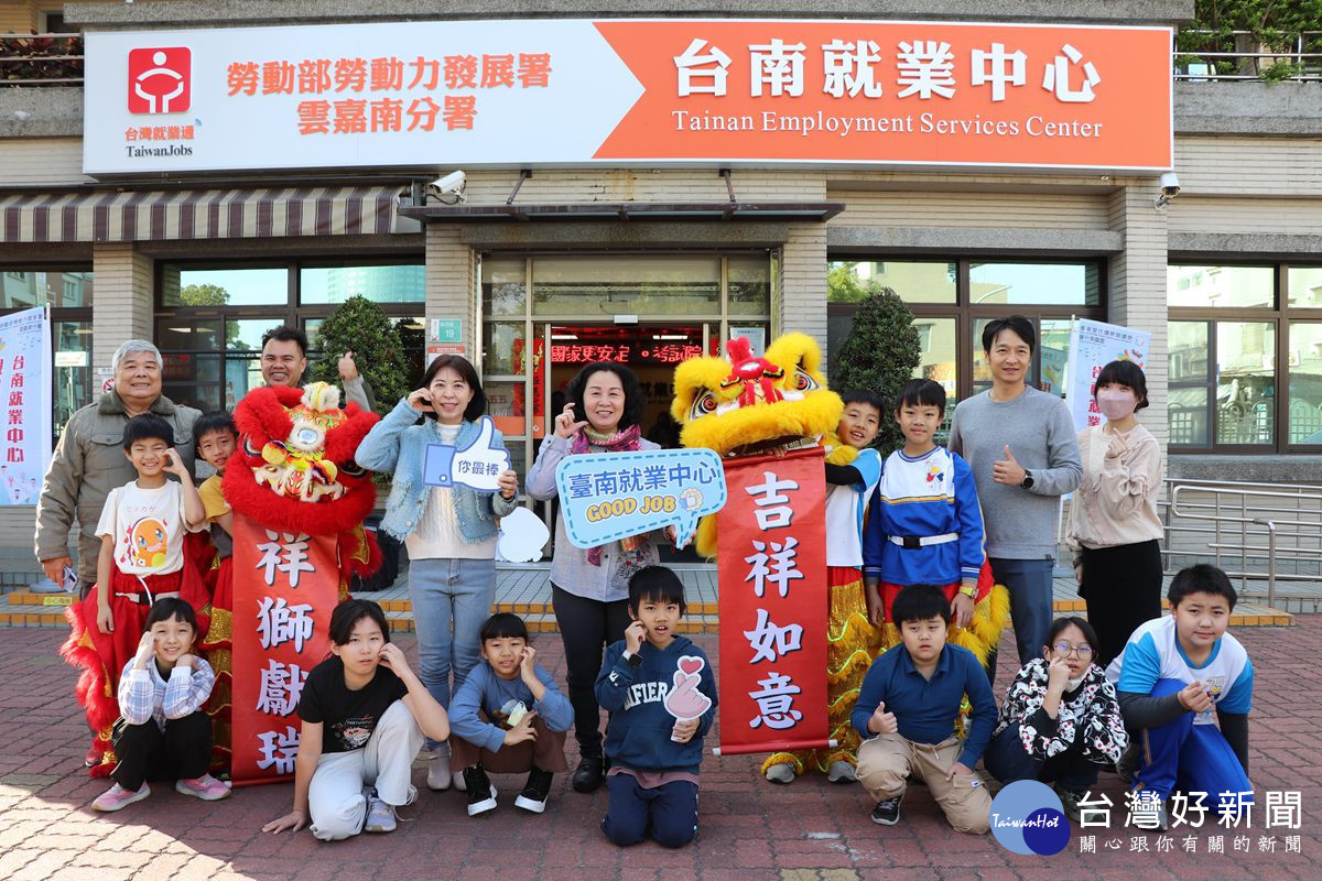 博愛國小醒獅團開場帶來精彩演出,讓正在面試與諮詢的民眾感受年節喜氣。台南就業中心主任洪儷瑋現場頒發感謝狀,感謝博愛國小孩子們以滿滿活力,為求職者注入好運與信心。不少民眾笑說:「一早看到醒獅,心情都輕鬆起來,面試也比較不緊張。」