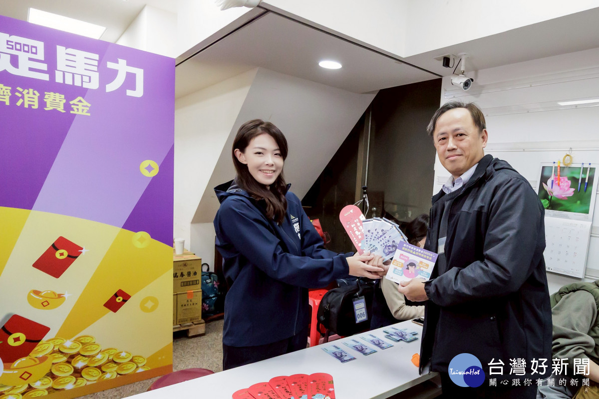 新竹市政府「115年新竹市振興經濟消費金」實體領取作業今(24)日正式展開,市長高虹安一早赴東寧宮參拜祈福,祈求發放作業順利圓滿,隨後前往鄰近的發放據點,親自發出全市第一份5,000元振興消費金紅包。