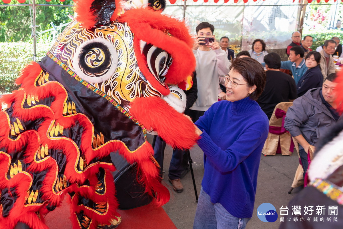 清德寺祥獅獻瑞迎新春 住持致贈許淑華「和諧共生」、「馬到成功」春聯