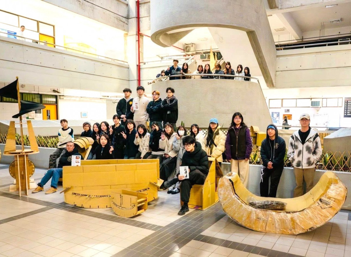 指導老師黃琬雯表示,本次課程的材料來源,特別感謝 momo富邦媒體科技捐贈大量二手紙箱,讓學生在真實材料與結構限制下進行設計與構築。透過元智大學永續發展暨社會責任中心的媒合,成功串聯企業資源、大學課程與永續理念,使循環再利用不只是課堂討論的概念,而是可以被實踐的設計行動。