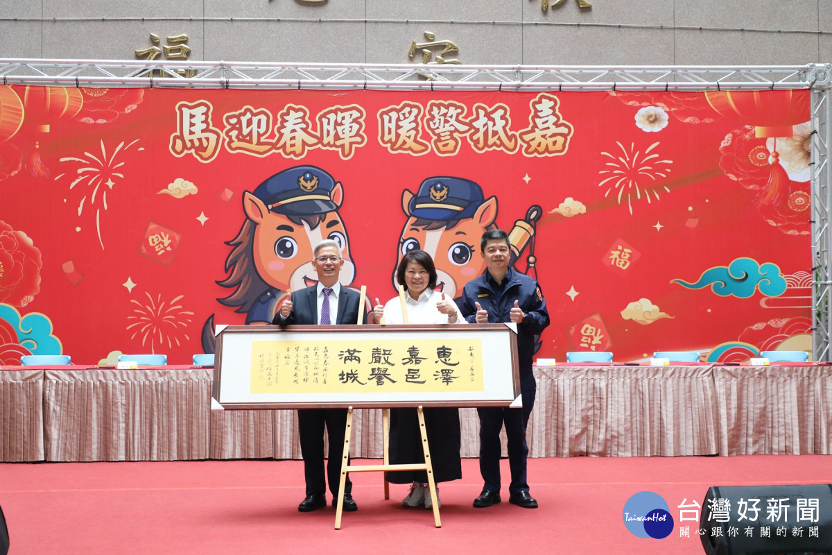 黃敏惠表示,迎接新春佳節,市府以「一馬當先、馬力全開」號召各界共襄盛舉,同時也重視人文底蘊的扎根與城市溫度的累積,感謝警察同仁結合節慶舉辦公益活動,讓嘉義市展現「人情味之都」的溫暖韌性,也特別感謝書法教育學會理事長率領書法師資到場指導,並結合在地學校與書法教師共同參與,讓書法藝術向下扎根,厚植文化基礎。