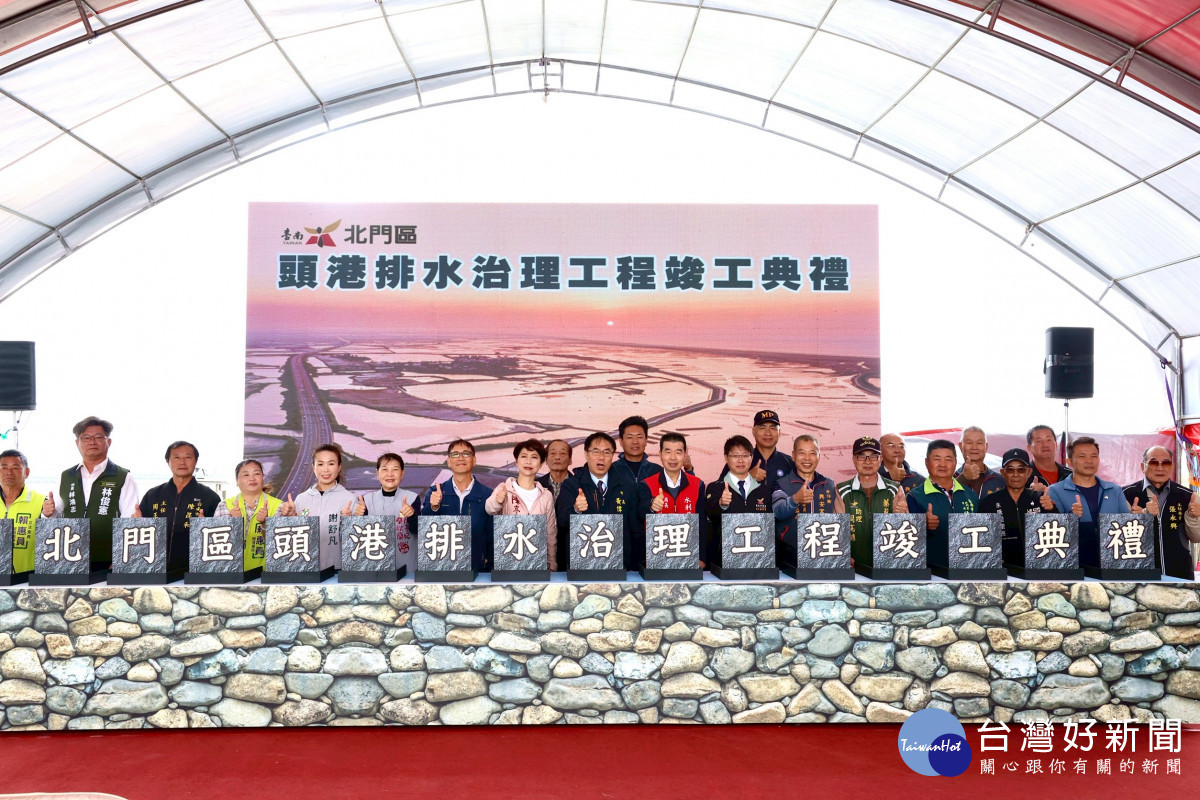 為強化台南北門區抵禦沿海暴潮及颱風豪雨防洪能力,台南市政府爭取經濟部水利署前瞻水安全計畫7,000萬元補助,辦理「北門區頭港排水治理工程」,共計完成護岸改善1,263公尺。市長黃偉哲表示,本工程透過護岸背填培厚及生態友善工法,除大幅提升排水護岸安全性,並同時兼顧低碳與生態保育,展現中央與地方攜手合作,防洪安全與生態環境雙贏成果。
