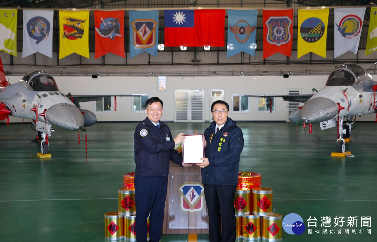 春節即將來臨,為感謝國軍官兵保家衛國的辛勞,黃偉哲市長28日率領市府團隊,由臺南市軍人服務站站長劉可雲陪同下,前往空軍第一戰術戰鬥機聯隊勞軍,致贈慰勞金、農產品給部隊,提前祝賀佳節愉快。空軍第一戰術戰鬥機聯隊聯隊長廖少將回贈感謝狀。