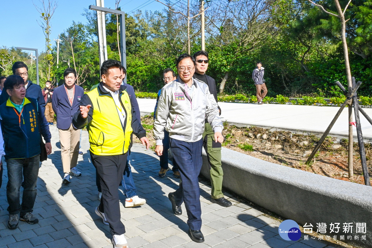 桃園市長張善政視察永安漁港北岸建設成果合影。