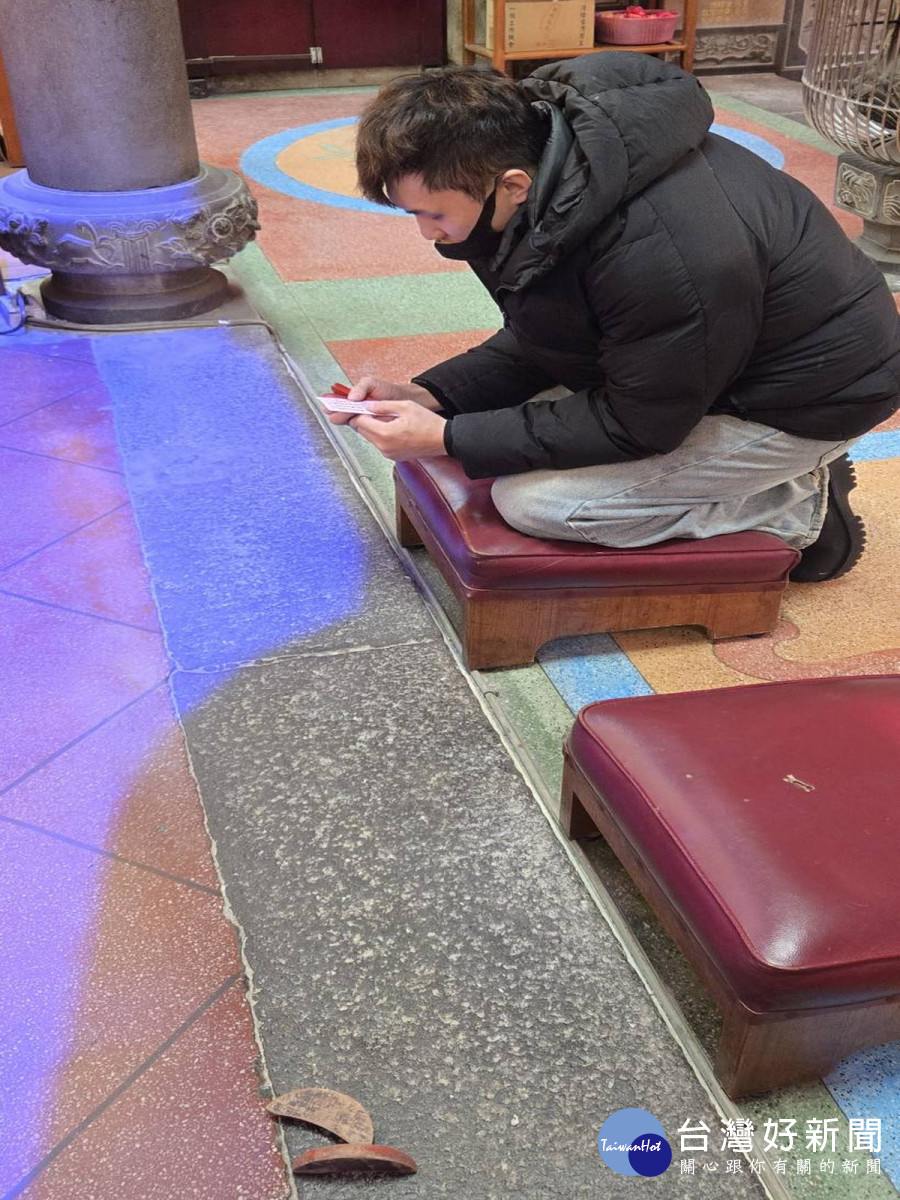 此次擲出立筊的青年表示,他約每兩週便會到廟中與三官大帝「說說話」,此次為個人事業發展前來請示,未料竟擲出如此罕見的立筊,讓他感到又驚又喜,也更加堅信諸神明的庇佑,期盼在即將到來的新年能夠事業順利、諸事圓滿。