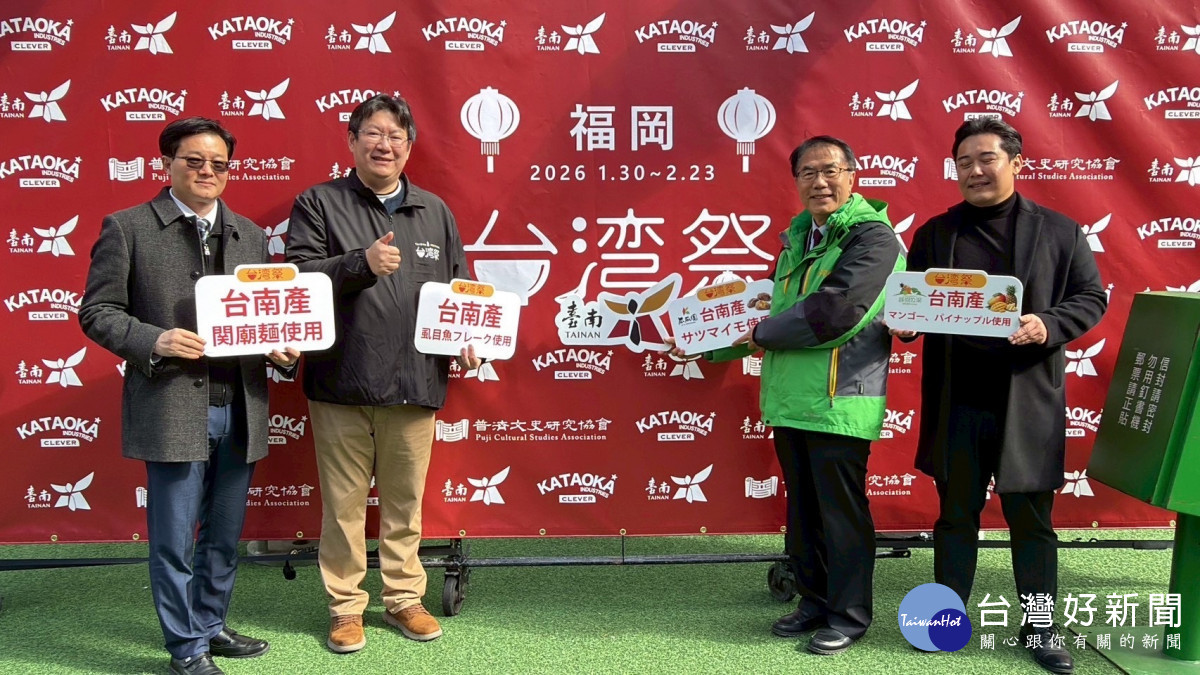 本次「台灣祭 in 福岡2026」的主辦單位「台灣祭執行委員會」長期於日本各大城市舉辦台灣祭活動,2026年則以「台南」為主題意象,融入「台南農特產」等元素,現場推出台南食材製成的美味料理,還有充滿年節氣氛的台南普濟殿燈籠等,活動將一路舉辦至2月23日止,預計吸引約15萬人次入場。黃偉哲期透過這次活動,將台南優質食材的好味道深植日本民眾心中,此行也馬不停蹄拜會數家通路商,期透過多元管道,讓台南農漁特產銷日再創佳績。