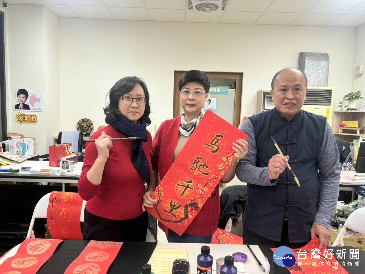 傳遞節慶祝福,陽明交大林志潔教授潔伴同行服務處1日舉辦一年一度「寫春聯、發紅包」迎春活動,邀請專業書法老師現場揮毫,與市民一同迎接新春。