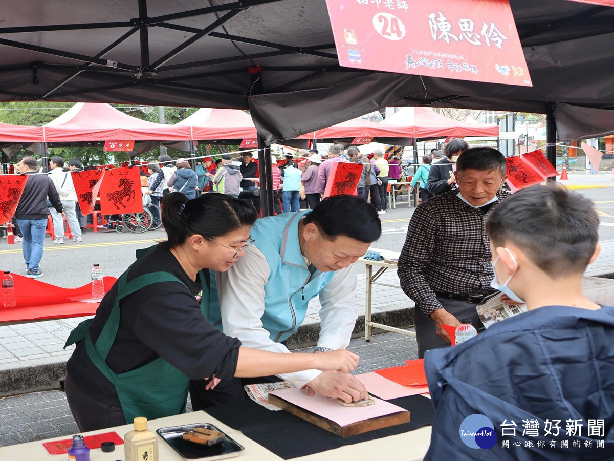 一早就感受到鄉親的熱情,聚集近千名民眾排隊領取號碼牌,本次共計邀請20位書法名家親臨揮毫,同時特別邀請年畫拓印專家溫文卿老師,以及畫家江慶章老師及各藝術家在現場親手製作版畫及彩繪,將祝福與美傳遞到民眾手中。