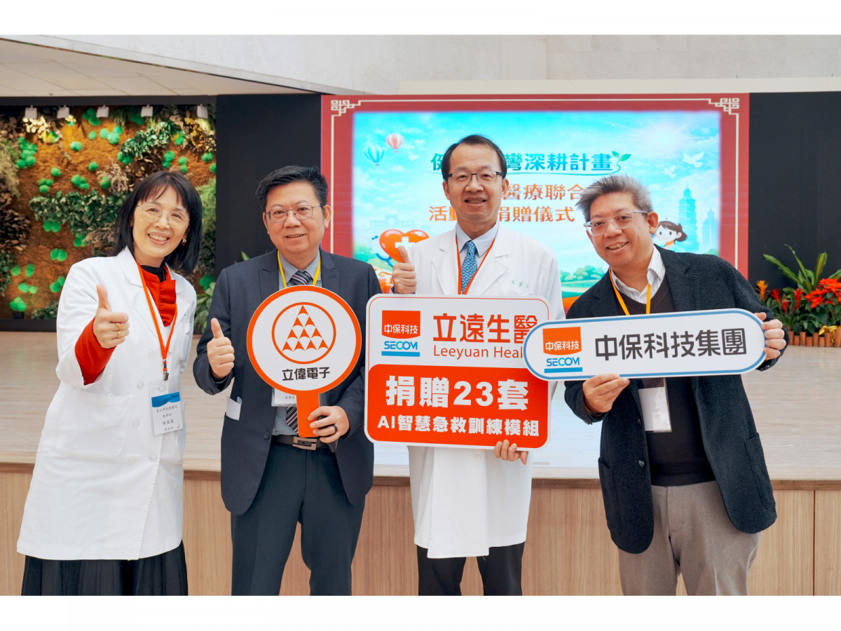 中保科技集團董事長林建涵與臺北榮民總醫院,3日共同舉辦「韌性醫療聯合倡議活動暨捐贈儀式」;中保科旗下立遠生醫宣布捐贈23台產醫合作開發的「智慧急救訓練模組(阿榮)」,全面導入臺北榮總體系與榮民之家,旨在透過AI科技強化第一線照護人員與社區的急救實作力。
