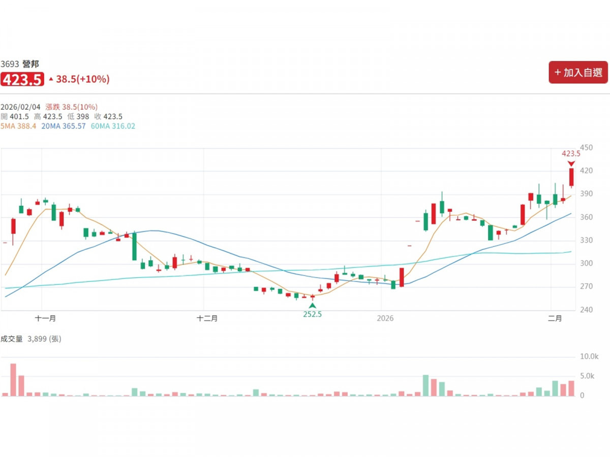 營邦同時打進NVIDIA與AMD供應鏈,是AMD MI450 Helios機櫃主要供應商,也成為輝達最新AI平台的合作夥伴。隨著AI伺服器新一代平台放量,法人預期營邦今年EPS約25元,重回高成長軌道。以歷史平均本益比約20倍估算,目標價上看504元以上,從被壓抑股轉為AI 主流供應鏈,市場開始重新評價。