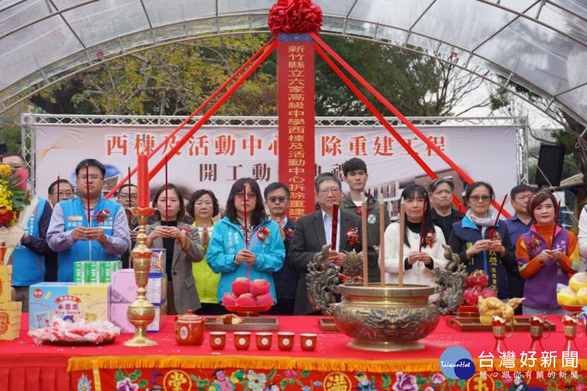 新竹縣政府斥資6億936萬元經費,將超過50年歷史的六家高中西棟及活動中心拆除重建,並於6日上午舉行開工動土典禮,在祥獅獻瑞表演熱場後,縣長楊文科率各界貴賓焚香祝禱,楊縣長表示,六家高中擴校增班是縣府因應116學年度高中量能不足,推動的「高中五大方案」之一,其中 南棟「竹韻樓」已於114年11月落成啟用,期許接續的工程如期如質完工,優化教育環境、造福更多學子。
