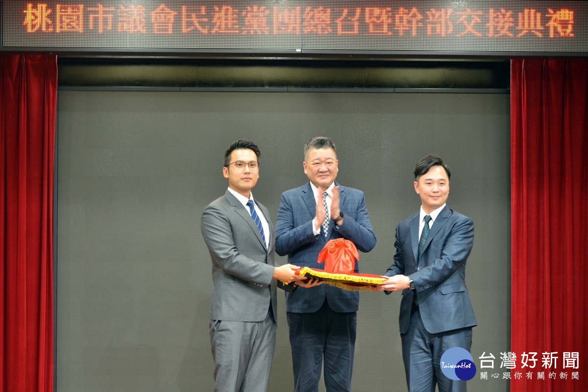 桃園市議會民進黨團6日下午舉行總召集人暨幹部交接典禮,表示,感謝黨團議員支持,未來將延續過去黨團努力,帶領民進黨團持續推動市政議題,為市民福祉及桃園建設全力以赴。