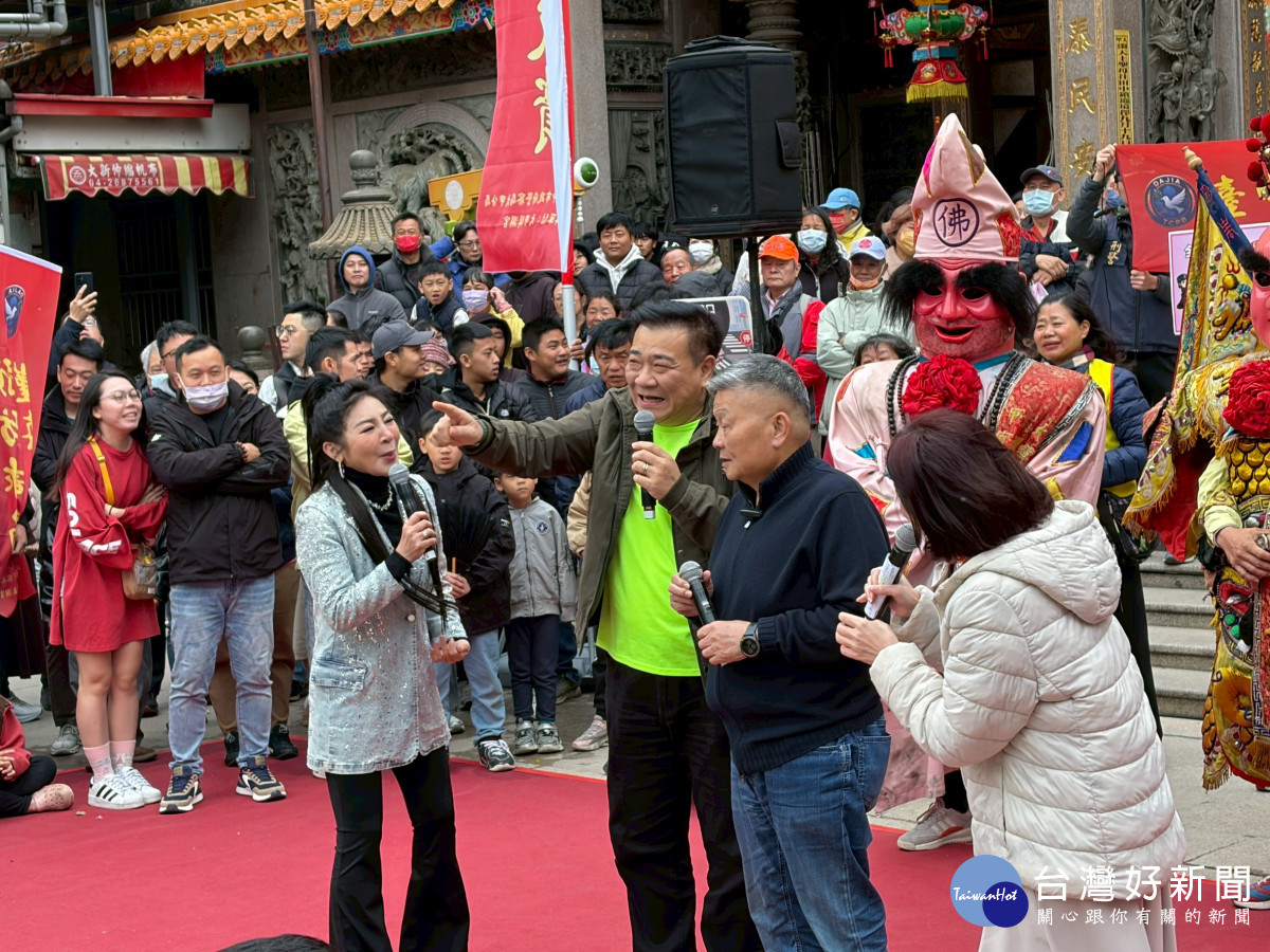 大甲分局於七日下午攜手大甲鎮瀾宮,邀請「保庇天后」王彩樺及「重量級藝人」白雲在廟前廣場,宣傳「115年加強重要節日安全維護工作」,進行反詐騙及交通安全宣導活動,現場人山人海圍觀,場面熱鬧。