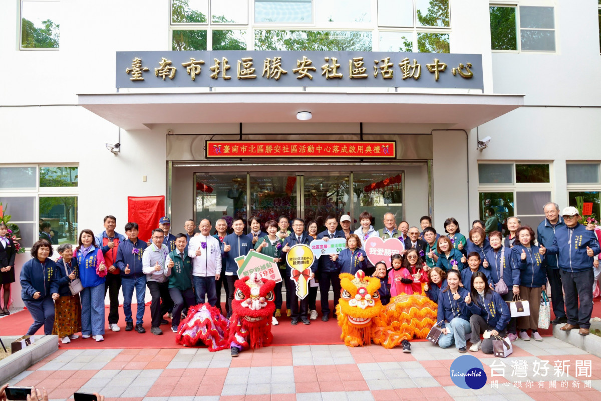 台南市北區勝安社區活動中心9日正式落成啟用,市長黃偉哲主持啟用典禮,與各界來賓及在地里民一同見證社區公共建設的重要里程碑。典禮由勝安社區長者帶來迎賓戰鼓揭開序幕,並結合成功國中青春熱舞與開元國小舞獅表演,展現青銀共融的社區活力,在熱鬧喜氣的氛圍中完成剪綵儀式。長勝里里長吳澐晏特別準備湯圓與茶點,邀請鄉親共享「入新厝」的喜悅。