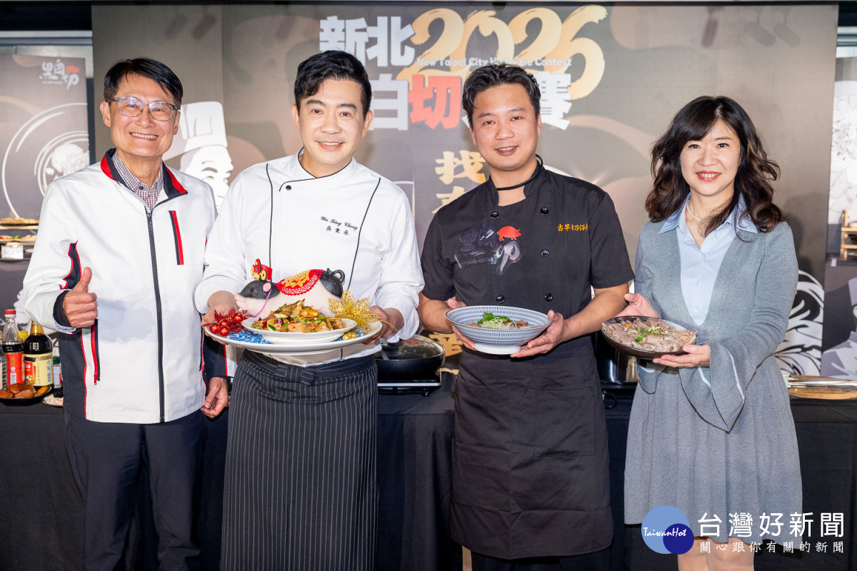 新北市政府市場處今(10)日舉行「2026新北黑白切大賽」宣傳記者會,陳純敬副市長宣布活動正式開跑,現場邀請吳秉承主廚示範豬肉創意及首屆新北黑白切優勝店家「古早切仔麵」呈現道地黑白切經典料理搭配,呼應本屆競賽採『職人創新』與『經典傳統』雙組別對決,邀集飯店名廚與巷弄職人同台較勁,演繹豬肉料理的多樣面貌,總獎金更高達70萬元,邀各路料理好手一決高下。
