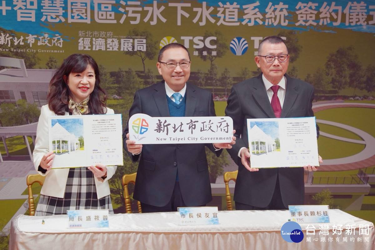 新北市政府今(11)日舉辦「新北國際AI+智慧園區污水下水道系統促進民間參與(BTO)案」簽約記者會,市長侯友宜出席見證,宣告新北市於都市計畫產業園區事業污水處理系統創全國之先,正式啟動。本案投資逾新臺幣9億元,透過BTO模式引進民間專業與資源,將為新北國際AI+智慧園區建構兼顧產業發展、環境品質與永續治理的關鍵基礎建設,為AI產業聚落發展奠定長期穩健基礎。