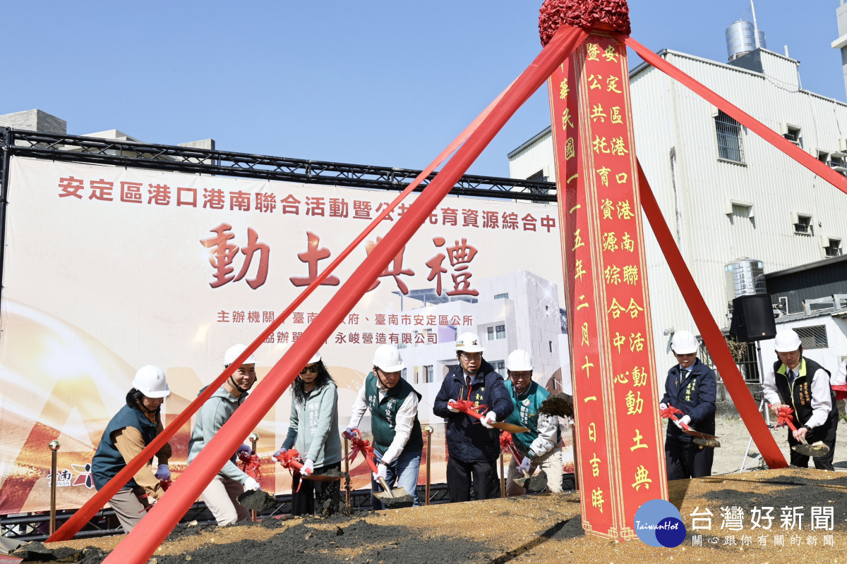 台南市安定區「港口港南聯合活動暨公共托育資源綜合中心新建工程」11日動土。安定區公所表示,本案完工後,將有效提升地方公共設施服務量能,促進社區互動交流,並強化公共托育資源,讓不同世代市民都能共享便利、安全的生活環境,逐步實現台南成為幸福宜居城市的願景。