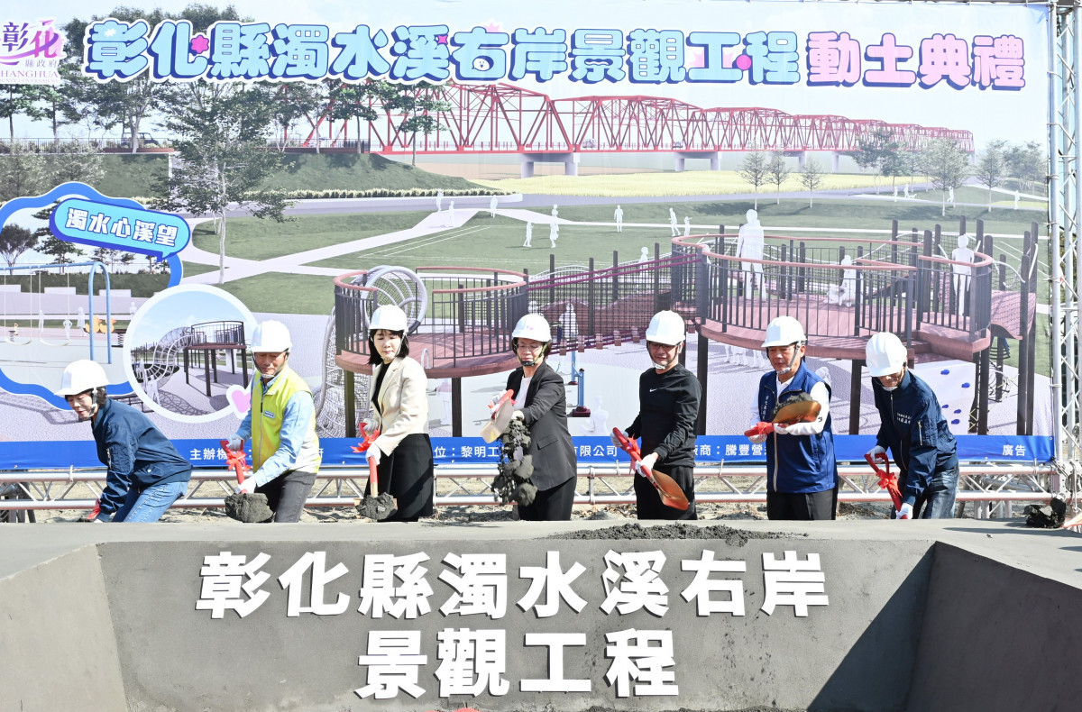 彰化縣政府持續推動特色景觀建設,縣長王惠美今(12)日前往溪州鄉主持「彰化縣濁水溪右岸景觀工程」開工動土典禮。工程將全面優化濁水溪右岸環境景觀並設置多元休憩設施,打造結合生態、歷史、遊憩與觀光功能的水岸空間,為鄉親與遊客提供更友善舒適的休閒場域。全案總面積約3.6公頃,經費4,354萬5,000元,工期預計240日曆天。