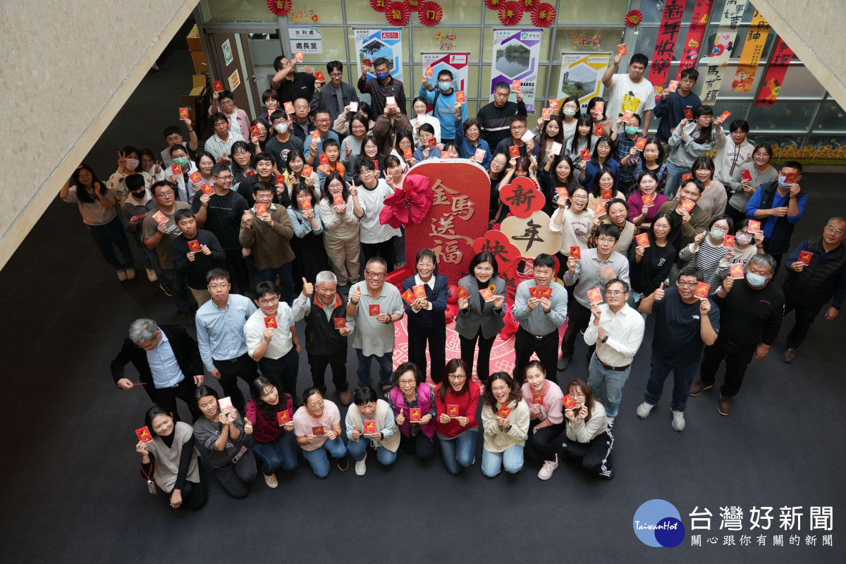 張麗善表示,明(13)日為今年上班最後一天,特別在春節連假前夕走訪各局處,致贈象徵「金馬奔騰、馬躍龍門」的福袋,兩位副縣長亦加碼致贈象徵美麗與魅力的糖果,期盼同仁保持愉快和悅的心情投入工作、為民服務。她也叮囑同仁返家後放下工作壓力,好好享受家庭溫馨時光,讓自己與家人都能健康快樂、充滿正能量。