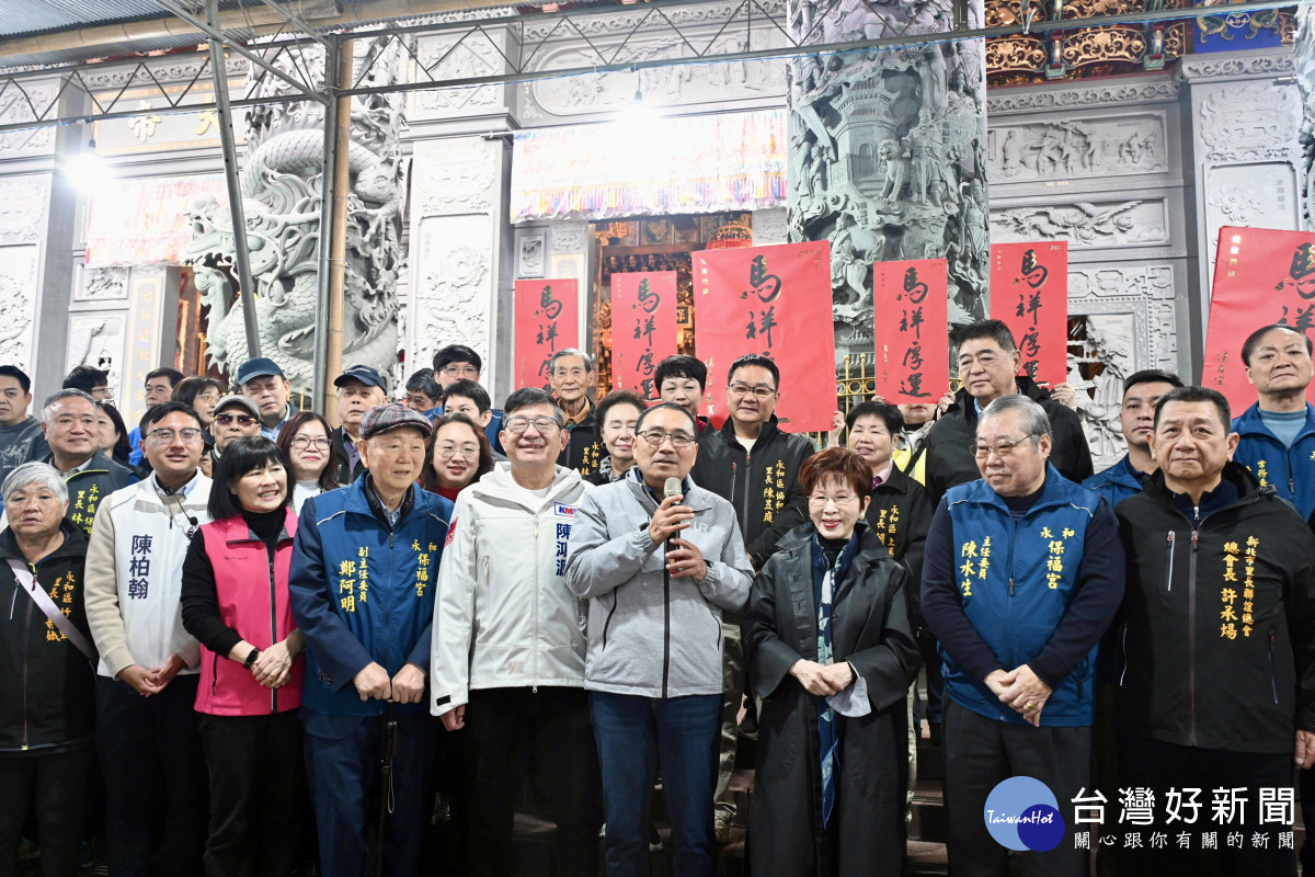 同日副市長朱惕之亦前往淡水清水巖、淡水無極天元宮、緣道觀音廟參香發福袋;副市長陳純敬則走訪三重義天宮、先嗇宮、樹林濟安宮、鎮南宮發送福袋,與民眾分享過年喜氣。