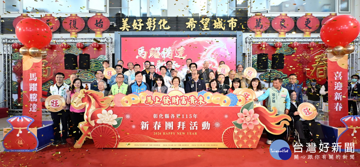 馬躍騰達迎新春,彰化縣115年新春團拜發送700份福袋添喜氣。圖/記者鄧富珍攝