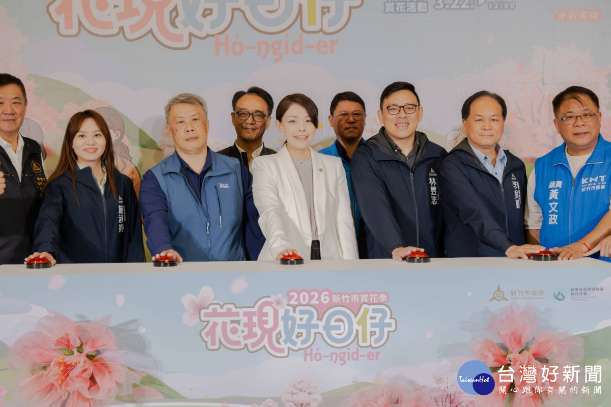 新竹市政府24日舉辦「2026新竹市賞花季—花現好日仔」記者會,由市長高虹安主持啟動儀式,宣布今年適逢新竹公園110週年,賞櫻季特別延長為雙週末活動,並研發「新竹公園110週年限定香氛」,且首度點亮汀甫圳櫻花小徑夜櫻。