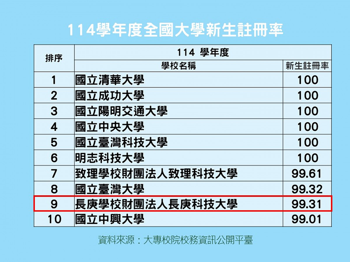 在少子化浪潮衝擊高教環境的嚴峻挑戰下,長庚科技大學憑藉卓越的辦學實力逆勢突圍。根據教育部最新公布統計顯示,該校114 學年度新生註冊率高達99.31%,數據歷年持續攀升,幾乎趨近滿額。面對台灣邁入「超高齡社會」對醫護人才的迫切需求,長庚科大精準對接產業脈動,積極培育智慧健康照護人才,不僅穩坐技職體系中的標竿地位,更成為家長與學子心中醫護專業的首選品牌。