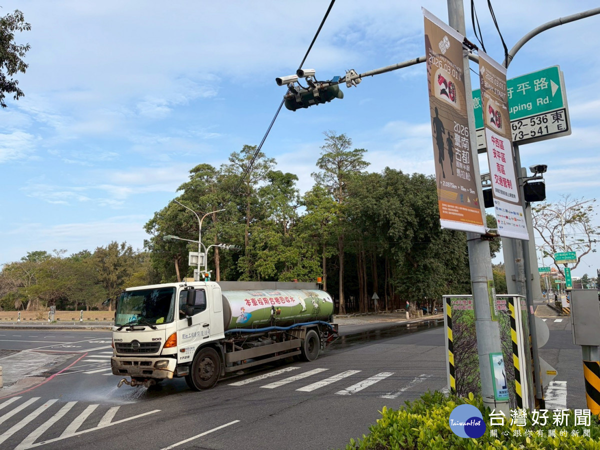 今年適逢古都馬拉松邁入第20週年,臺南市政府持續加強賽事環境整備。賽前一週已完成全市26區逾1,300公里定期洗街,並強化賽道及周邊巡檢清掃;賽前一天再針對28條重點路段洗街,清潔長度近114公里,並同步啟動空氣品質守護行動,兼顧運動盛事與城市健康。