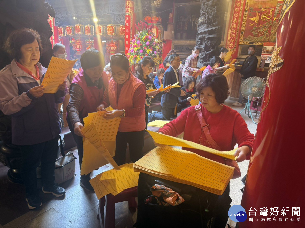 鎮瀾宮起斗儀式光明燈點亮後,今年農曆每月初一、十五日,將持續誦經讀疏文,為信眾祈福。今年大甲鎮瀾宮登記點光明燈的民眾預估十萬人,而且安太歲數也相近數。據廟方指出,以往光明燈上信眾名字都是以毛筆書寫,但因點燈的人愈來愈多,現在已經改用電腦打字,不過志工他們還是要依照順序,爬上梯子,逐一將名條貼在每盞燈上,再放置有名字的平安符。