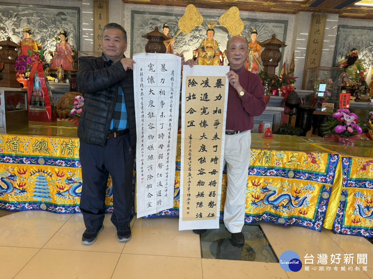 主委鄭銘輝表示,三清道院二十九年來主辦聖誕慶典,都策畫結合書法比賽,參加的有國小三、四、五、六年級、國中、高中、社會組及長青組等九組比賽,計二千餘位通過初選者,在慶典當天中現場再競名次。三清提升傳統墨寶價值,因有實質傳統文化價值,前總統馬英九多年來每逢現場比賽之際都會應邀與會,並當場書寫作品,參與人獲得名次,獲得行政院表揚證書。